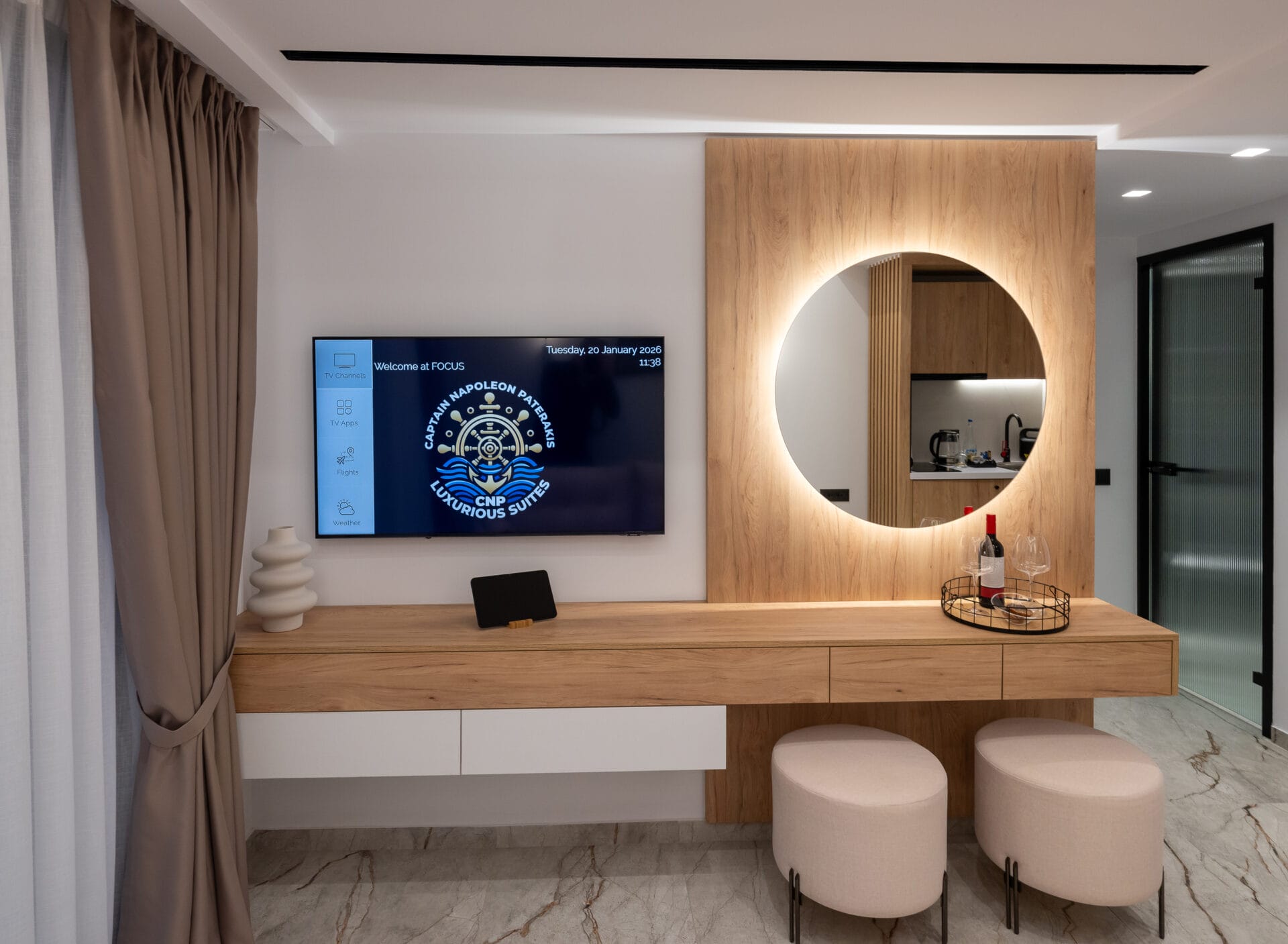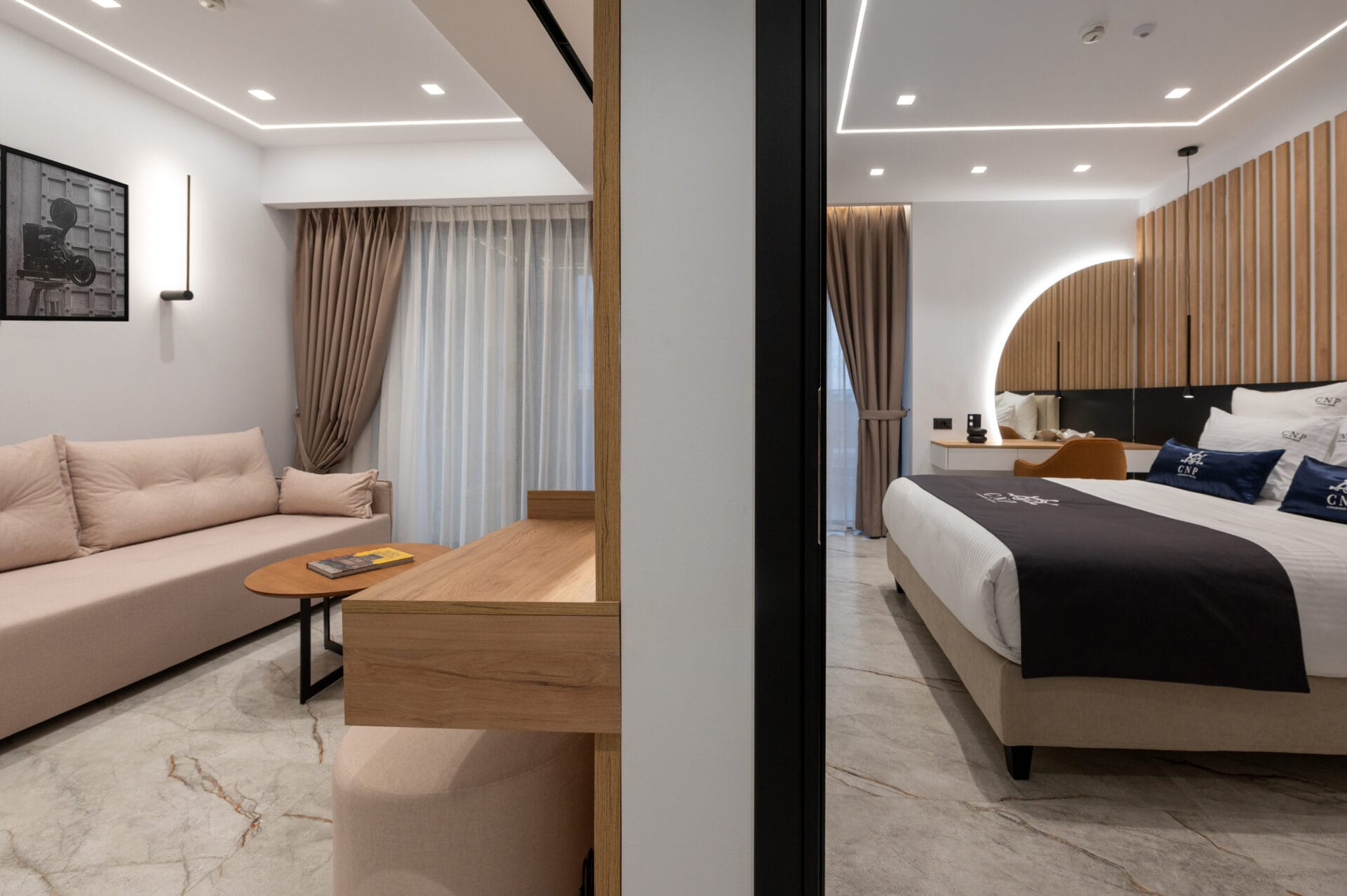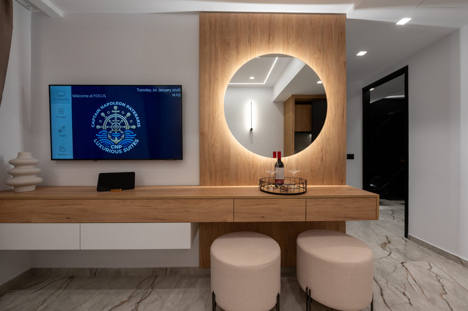 Natural light fills the space, highlighting its minimal elegance and functional design. Whether you’re relaxing, creating, or simply being, the Focus Suite offers a serene backdrop β€” modern, refined, and thoughtfully composed for your stay.