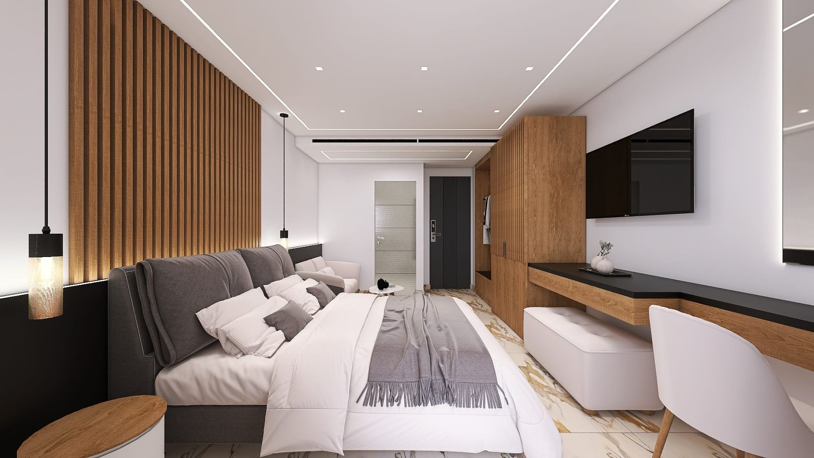 Enjoy premium comfort in the Ithaca Suite, a refined Double or Twin room of approximately 30 square meters, ideal for travelers seeking both function and relaxation. With a spacious private balcony of 9 sq.m., overlooking the quiet city street, this suite invites you to pause, unwind, and feel at home.