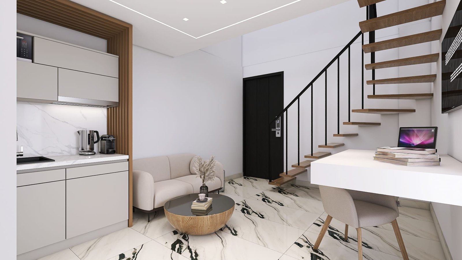 Step into the Odysseus Suite, a Superior Cozy Double Maisonette, of approximately 39 square meters with 11 sq. m. balcony, thoughtfully crafted for couples or solo travelers who value style, serenity, and comfort. With warm lighting, elegant finishes, and a soothing palette, this inviting suite offers a peaceful retreat from the rhythm of the city.