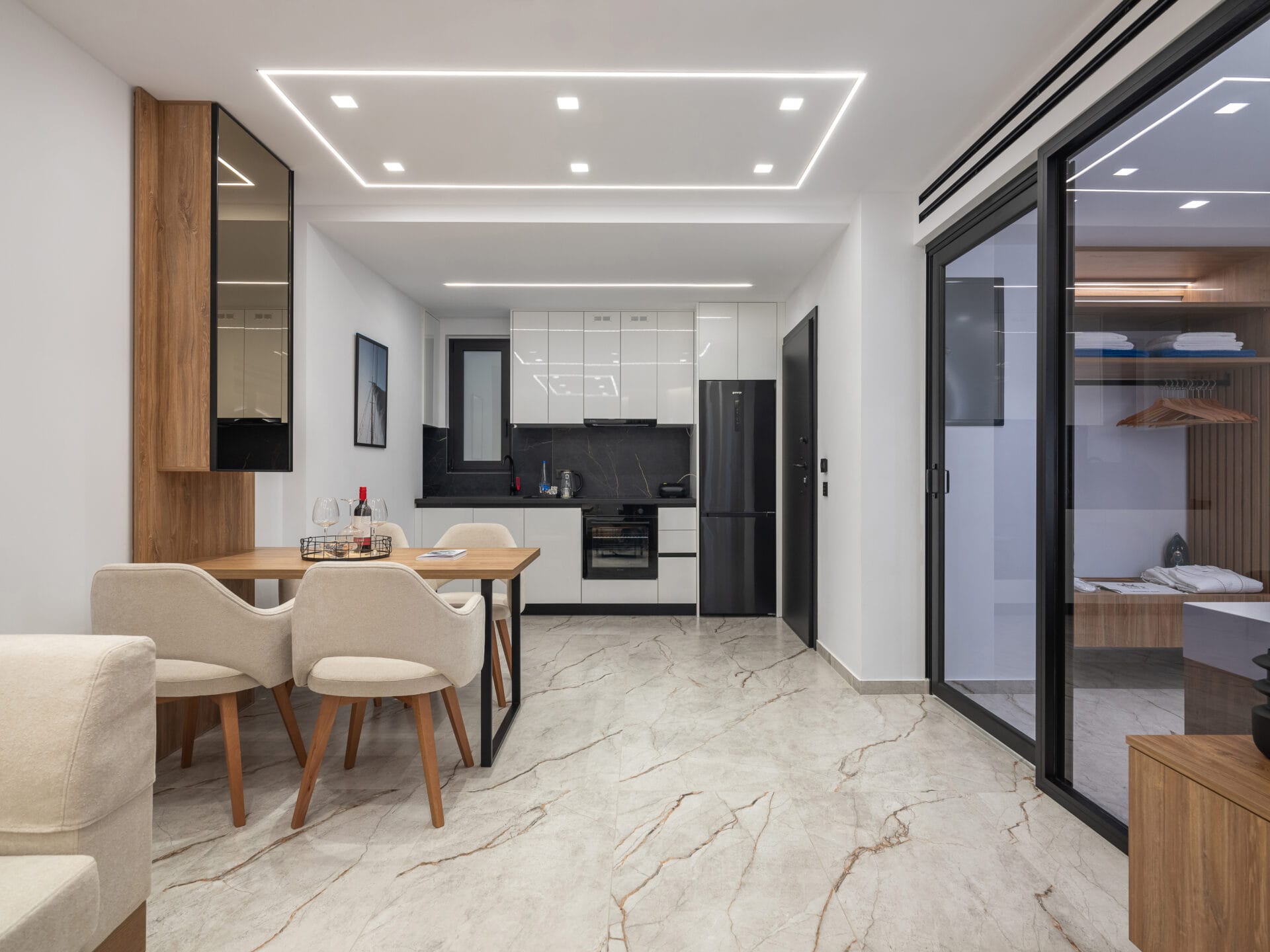 Welcome to the Zephyrus Suite — a spacious 53-square-meters with 34 sq.m. veranda, along with a private jacuzzi, Elite Triple room designed for guests who seek elevated comfort and graceful tranquility. Featuring a plush queen bed and a single sofa bed, this suite is ideal for couples or small families who appreciate refined space and thoughtful design.